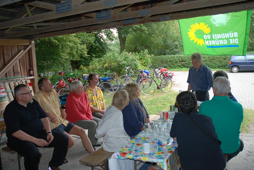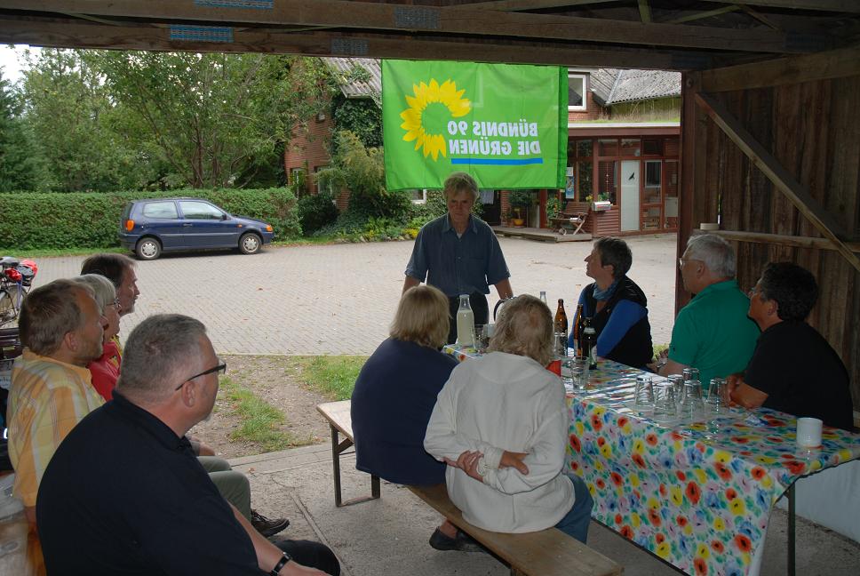 Harald Rzehak hat uns dann ausführlich über seinen Bioland-Hof und die dortige Milchproduktion informiert. Kühe, Ställe und Weiden sowie die hofeigene Windenergieanlage boten interessante Einblicke in alternative Milchproduktion.