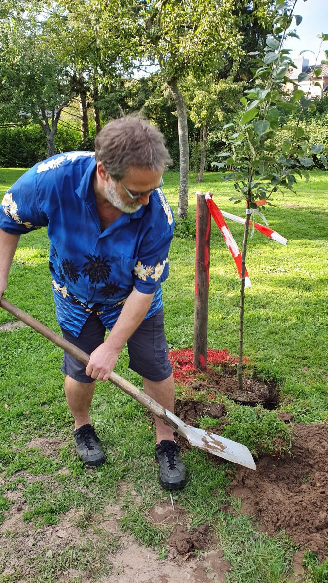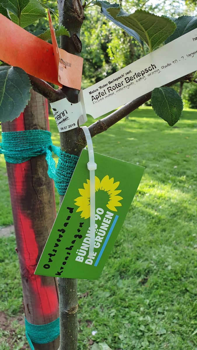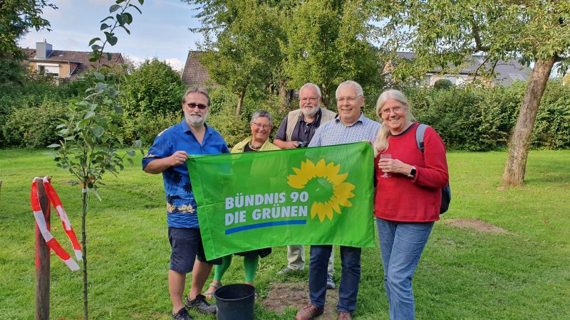 Bürgermeister Sander lobte in seiner Rede die gute Zusammenarbeit mit den Grünen unserer Gemeinde, besonderen Dank sowie einen Blumenstrauß gab es für Gudrun Rempe für 25 Jahre Arbeit als Gemeindevertreterin. Luise Amtsberg überbrachte Grüße als unsere Wahlkreiskandidatin für die Bundestagswahl, Marret Bohn sprach als Vertreterin der Landtagsfraktion. Lasse Bombien gratulierte für den Kreisvorstand und übergab uns zum Jubiläum ein Apfelbäumchen, dass seinen Platz auf der Streuobstwiese an der Fußsteigkoppel gefunden hat.