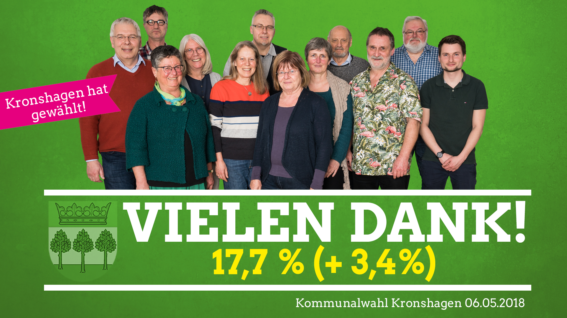Wir bedanken uns bei unseren Wählern für das Vertrauen und werden uns in den nächsten 5 Jahren in Kronshagen mit Grüner Kommunalpolitik.