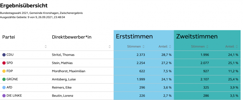 Auch über ganze 84,8% Wahlbeteiligung in Kronshagen kann man sich sehr freuen!